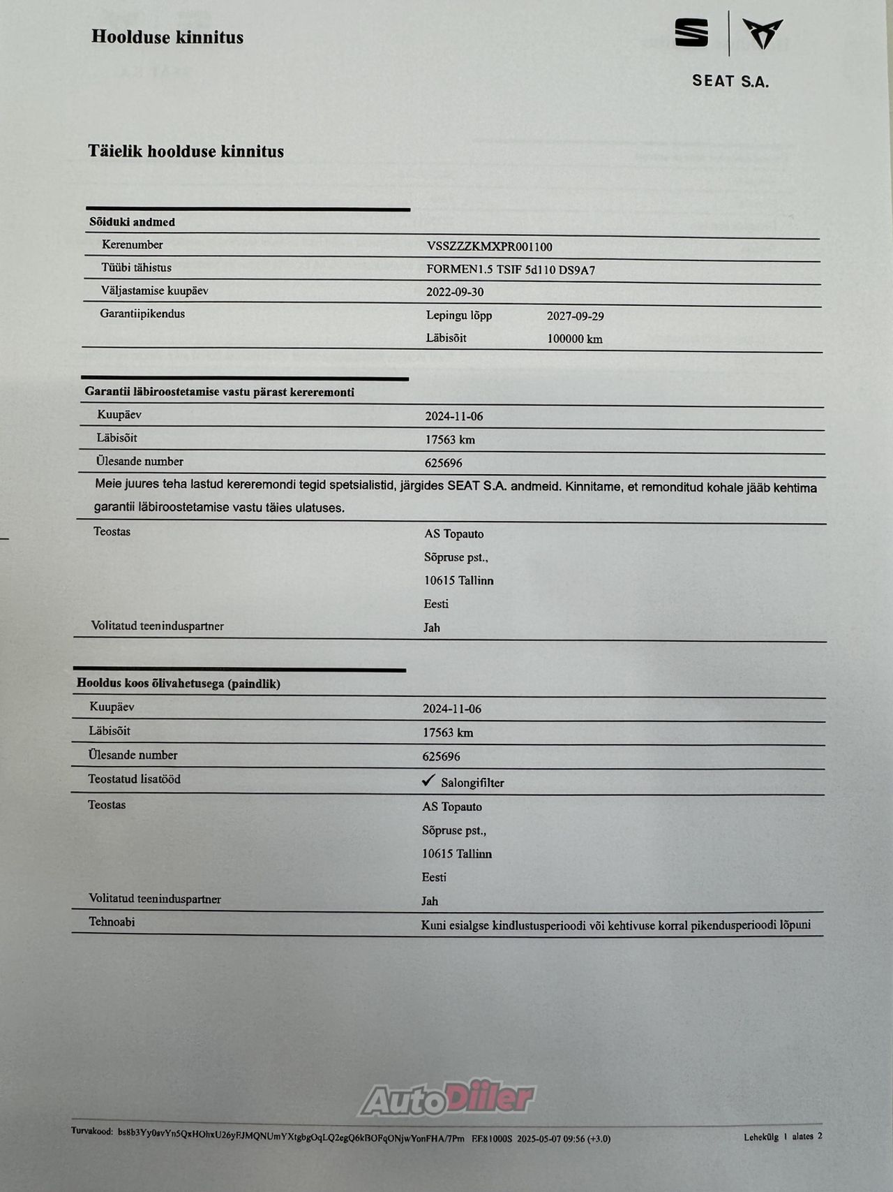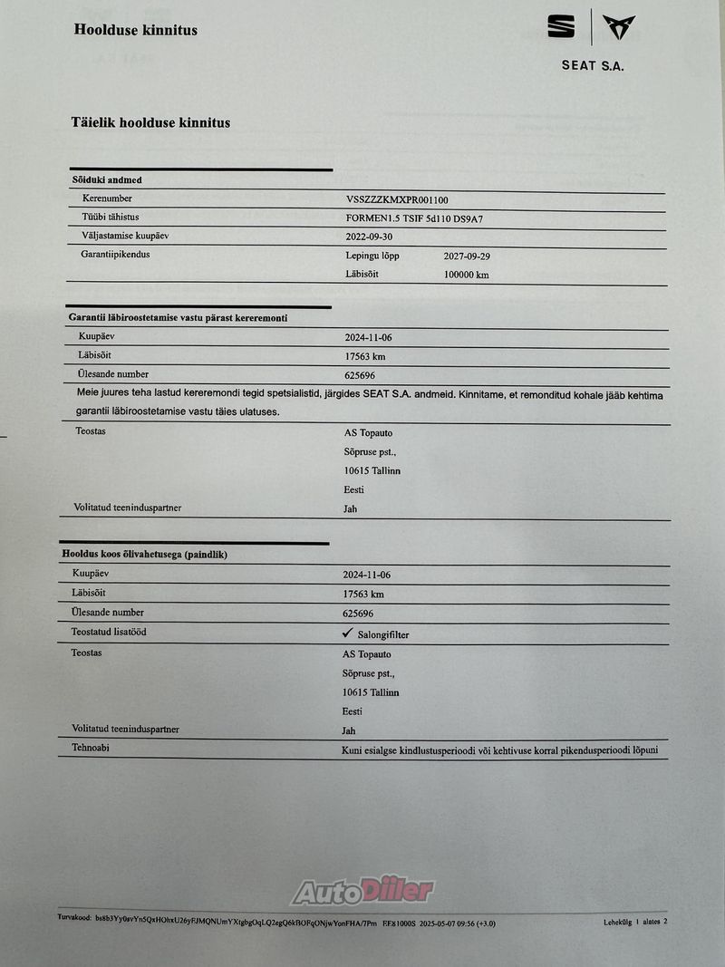 - Kehtiv tehasegarantii kuni 27.0.2027 või 100 000 kilomeetrit - Korrapäraselt hooldatud vaid margiesinduses - Viimane hooldus 11.2024 läbisõidul 17 563 kilomeetrit Topauto Tallinn - LED (päevatuled, tagatuled, lähituled, kaugtuled) - Kaugtulede ümberlülitamise assistent - Soojendusega rool - Apple CarPlay, Android Auto - Püsikiiruse hoidja (eessõitjaga distantsi jälgiv) - Parkimiskaamera - Digitaalne näidikutepaneel - Võtmeta avamine - võtmeta käivitus Avariilisuse info: Vastavalt Eesti Liikluskindlustus Fondi kodulehele www.lkf.ee ei ole antud sõiduk osalenud kindlustusjuhtumis. Täpsema informatsiooni osas kontakteeruge meie müügikonsultantidega.