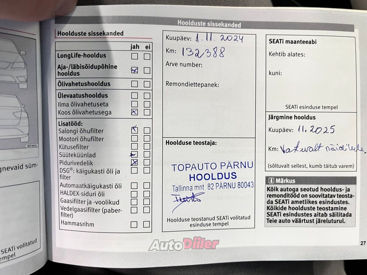 - Eesti ajalugu - Korrapäraselt hooldatud vaid margiesinduses - Viimane hooldus 11.2024 läbisõidul 132 388 kilomeetrit - Rikkalik Xcellence varustus - LED (päevatuled, tagatuled, lähituled, kaugtuled) - Apple CarPlay, Android Auto - Istmesoojendused (2) - Püsikiiruse hoidja (eessõitjaga distantsi jälgiv) - Parkimisandurid (ees, taga) - Parkimiskaamera - Võtmeta avamine - võtmeta käivitus - Veokonks (teisaldatav) Kindel valik! Garantii Avariilisuse info: Vastavalt Eesti Liikluskindlustus Fondi kodulehele www.lkf.ee ei ole antud sõiduk osalenud kindlustusjuhtumis. Täpsema informatsiooni osas kontakteeruge meie müügikonsultantidega.