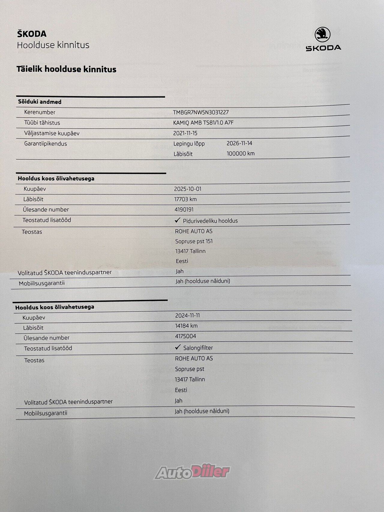 - Eesti ajalugu - Hooldatud korrapäraselt vaid margiesinduses - Viimane hooldus 01.10.2025 läbisõidul 17 703 kilomeetrit Rohe Auto - Kehtiv tehasegarantii kuni 14.11.2026 või 100 000 kilomeetrit - LED (päevatuled, tagatuled, lähituled, kaugtuled) - Apple CarPlay, Android Auto - Soojendusega rool - Istmesoojendused (2) - Püsikiiruse hoidja (eessõitjaga distantsi jälgiv) - Parkimiskaamera - Võtmeta avamine, võtmeta käivitus Kindel valik! Garantii Avariilisuse info: Vastavalt Eesti Liikluskindlustus Fondi kodulehele www.lkf.ee ei ole antud sõiduk osalenud kindlustusjuhtumis. Täpsema informatsiooni osas kontakteeruge meie müügikonsultantidega.