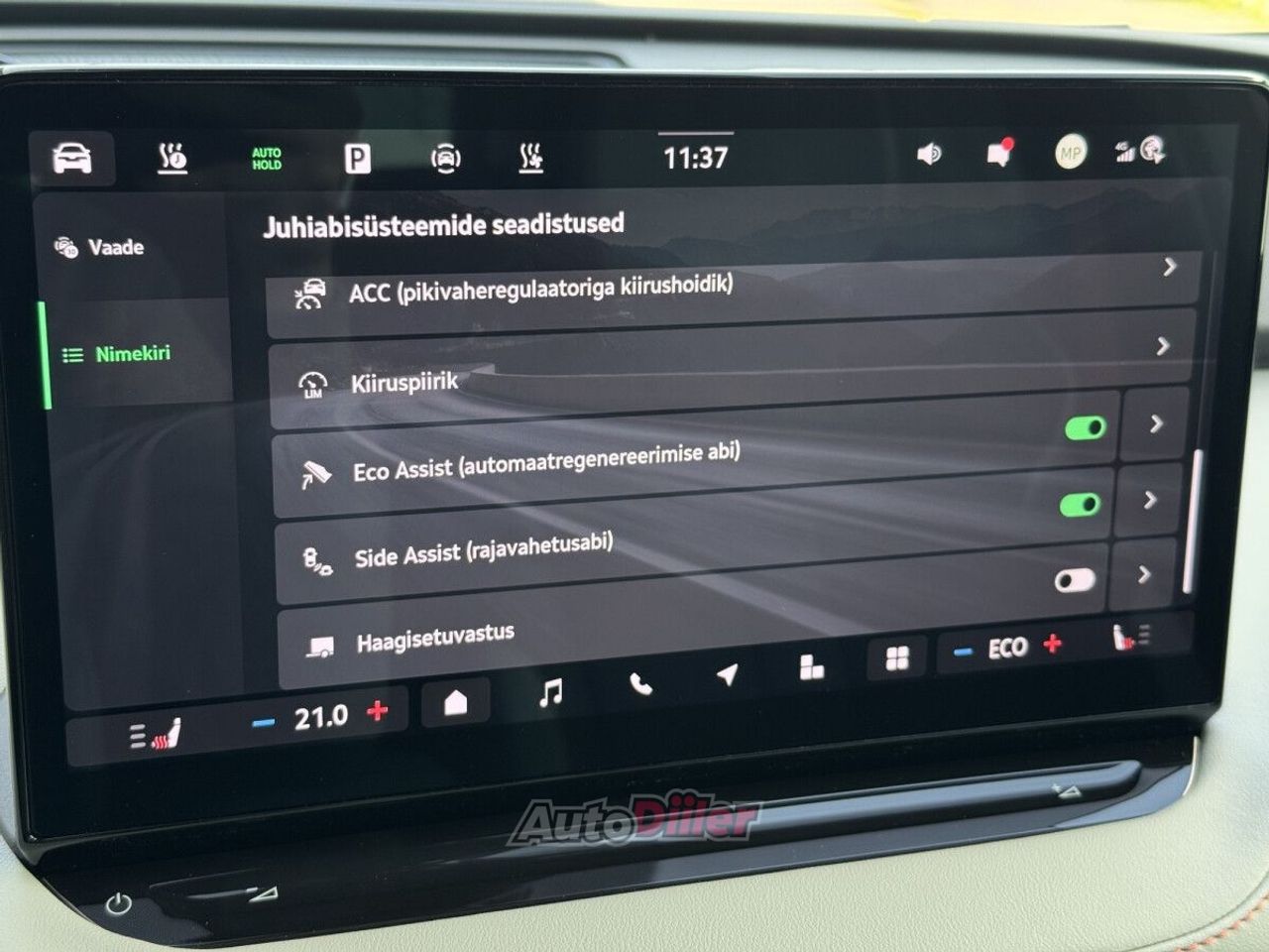 • Sõiduraja hoidmise abisüsteem