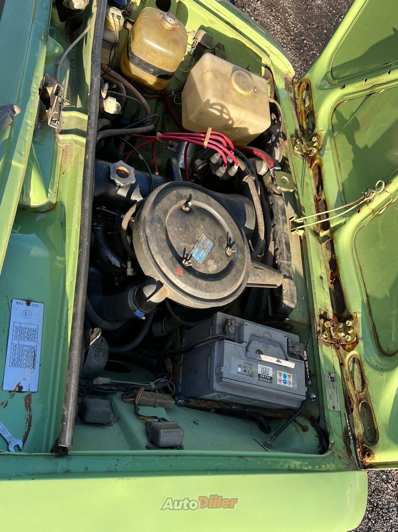 Aastast 98 garaazis seisnud eksport 1981a Lada 2101(1200). Erisused tava 2101: •Tagaklaasi soojendus •Peatoed ees •Eelpingutusega turvavööd •Pidurivõim •Roolisammas klaasipesu kangiga ja el.pumbaga klaasipesupaak •Kindlasti on pisiasju veel. Kere üle keskmise korras, póhja all ees paremal tòstekronsa ára roostetanud, kuid pòhi on terve! Masin kàivitub ja sidurdab, vahetatud siduri pea ja töösilinder. Piduripeasilinder, tagumised piduriosad vahetatud, ees uued kolvid ja mansetid ning vârsked kettad. Taga pidurijòu regulaator ei lase hetkel òli tagumistesse kolbidesse, aga uus tuleb kaasa. Uus keskmine pütt. Kaasa tuleb, omajagu varuosasi, velgi jms. Mingeid detaile piltidel pole. Auto pole registris enam.