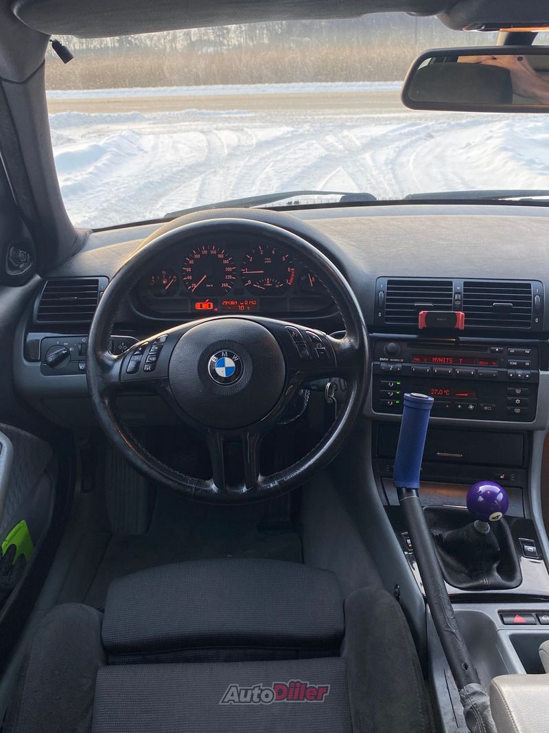 Auto on koheselt kasutusvalmis. Pikk kehtiv ülevaatus: 10.2026, kindlustus kehtib. All korralikud naelrehvid. Teostatud/paigaldatud: •Custom pöördenurga adapterid •Originaal käsipiduri kohale paigaldatud hüdro, millel kang kergesti eemaldatav •Aju ülekirjutatud (viskab ka leeki jne) •Piirajat tõstetud •Coiloverid •Ees E46 kupee alcantara sportistmed Äsja vahetatud: •Mootoriõli (Wolf 5W-30 Long-life01) •Õlifilter (Febi bilstein) •Õhufilter (Febi bilstein) •Salongifilter (Mfilter) •Rehvid (ees 215/45/R17 Michelinid, taga 225/45/R17 Continentalid) Iga ilmaga paugupill ja sooja puhub väga hästi. Kere üldpilt viisakas, kuid leidub roostet ja väheselmääral ka sõjaarme. Põhi/karbid korras. Auto pakub ohtralt sõidurõõmu aastaringselt, minek terav ja jõudu piisavalt. Lisaraha eest saab kaasa sportrooli koos vaheadaptriga. Ledbar külge ei jää. Vahetuseks võib pakkuda: BMW E60 535d/545i, BMW E91 335d, BMW E46 330d 150kW, Volvo 740 turbodiisel, mercedes-benz W210 E300 OM606 või mõnda huvitavat V8 mootoriga Audi Quattrot. Hea pakkumise puhul olen valmis maksma ka kompenisatsiooni.