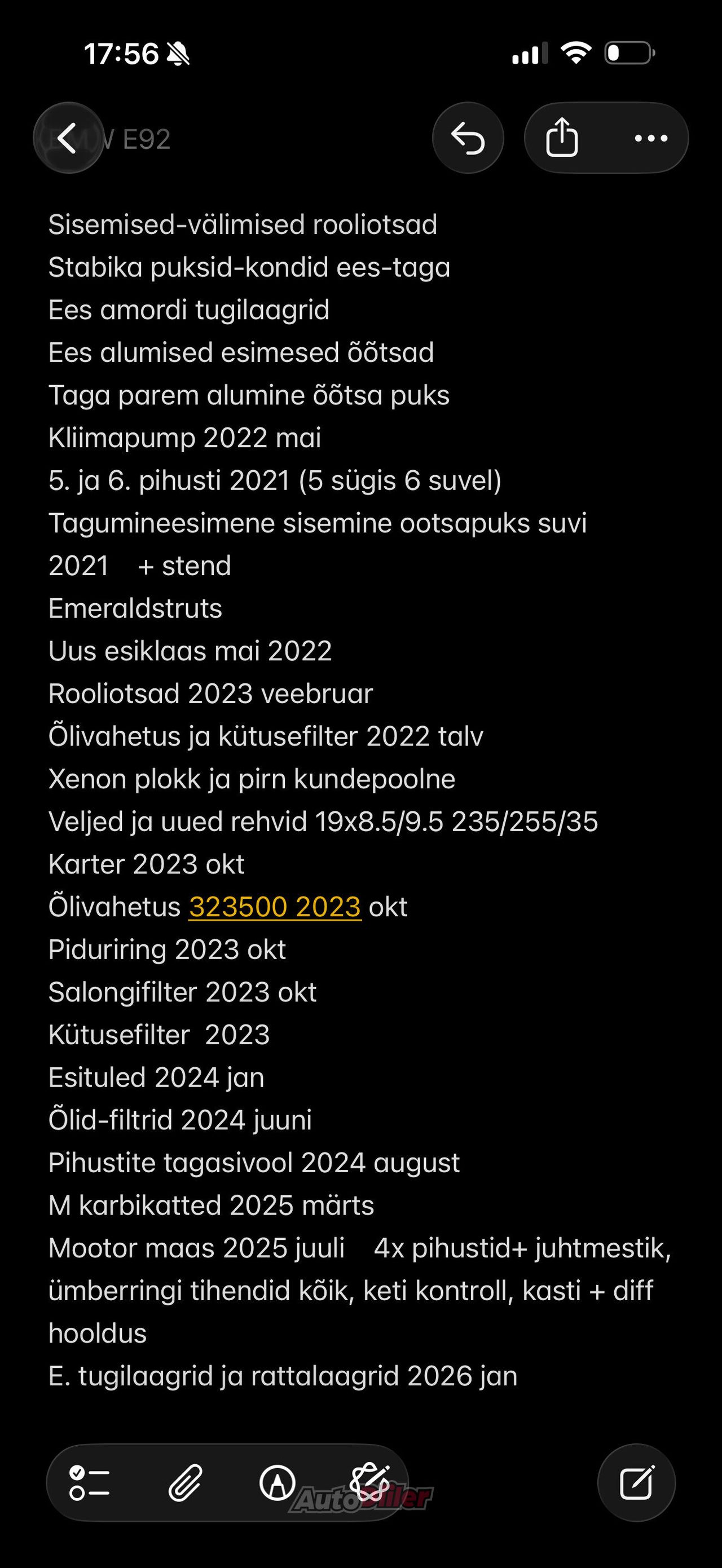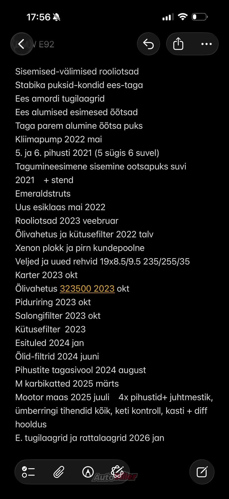 Müügiks e92 335d automaat Logic 7, labadega vahetus jm. Auto u. 5a meie käes olnud, selle ajajooksul hoitud ja hooldatud, nüüd lihtsalt vajadus suurema ja uuema järgi. Viimati eemaldatud igasugu õlilekkeid, vahetatud nüüdseks kõik pihustid tutikate vastu jpm. Leiab vanusest tingituid iluvigu ja mõlge, juhiiste kulunud ja äärest katki. All paar hooaega ja vähe sõitu näinud Sailuni maastud, viimasel pildil olevad 19” rattad kaasas täishinnaga, vajavad uusi rehve. Samuti kaasas originaal karbikatted. Tehtud palju, kõik lisainfo lihtsam saada telefonitsi.