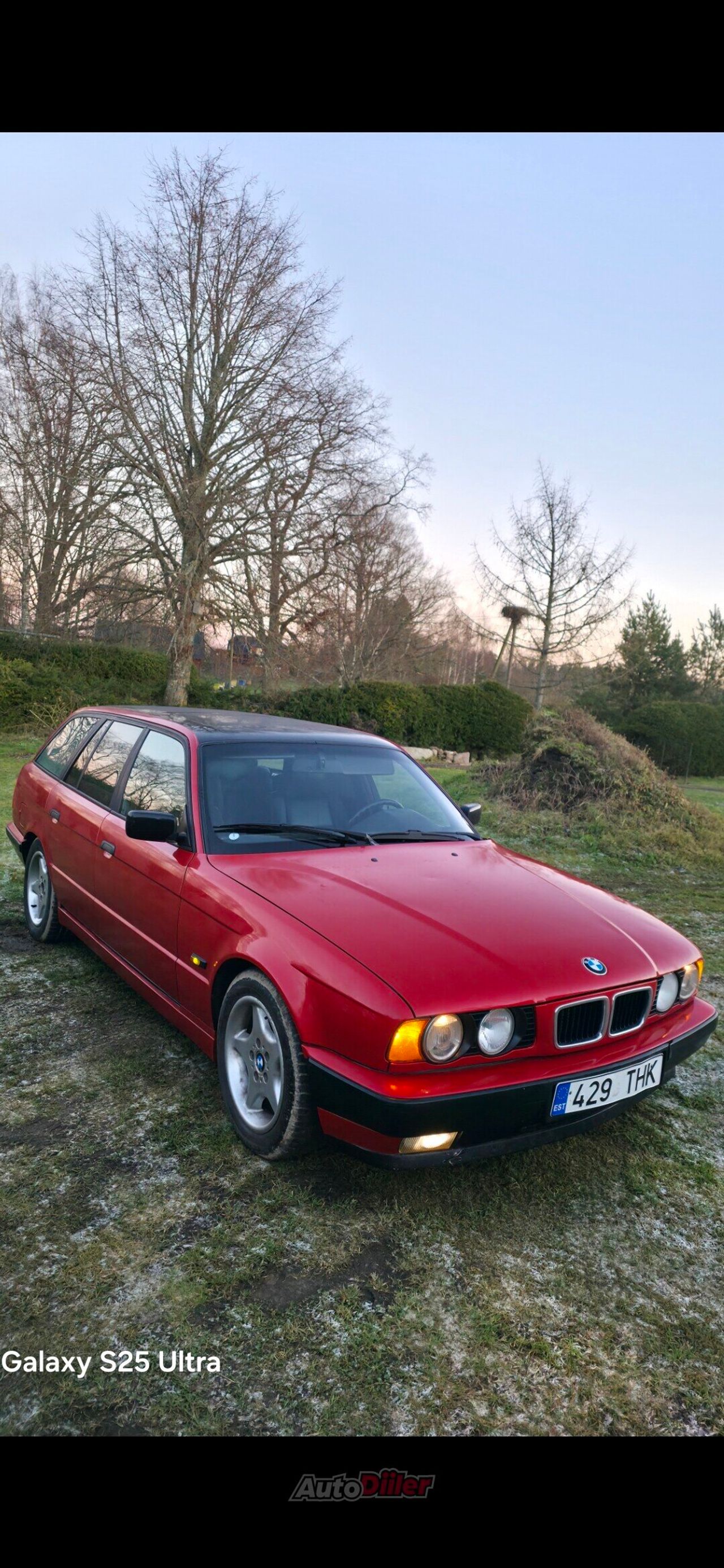 Panen siis huvipärast siis müüki oma hobiauto Bmw E34 525 TDS Touring manuaalkäigukastiga 1995.a. Autol karbid vahetatud, keretööd tehtud. PunasekPanens kiletatud. Viimased talved sõidetud pole. Peal on 2.4 mehaaniline pump ehk käivitusprobleeme pole. Saanud kõvasti remonti. Esisillas kõik kaikad, sisselaskekollektori tihendid, uued eelsüüteküünlad+plokk. Sillastend. Õli+filtrid, uus genekas. Uued kettad/klotsid. Käsipiduritross koos juurdekuuluvaga. Käivitus ka -27c paugust. Kere hea. Must lagi, panoraankatuseluuk, taga ustel kardinad, el-aknad, must nahktuba, juhiiste sport. Kompu, Pioneeri BT-stereo, ees udutuled, teisaldatav kärukonks, shadowline. Auto passis värvimuutus tehtud. Uus tagumine sumbuti pütt. Ei tahma kuna enne ülevaatust sai pumpa maha keeratud. Armatuuris üleliigseid tulesid ei põle. Soojaks läheb kiiresti. Keemismuresid ega käivitusprobleeme ei esine. Paak hoitud täis. Talvel aeg-ajalt käivitatud ja liigutatud, et pidurid kinni ei jääks. Karpidele sisse lastud ka roostemuundurit. Konditsioneer. Ees käetoed. 3-kodaraga rool. 16" originaal valuveljed. 2tk suverehvid, 2tk lamellid peal. Kaasa originaal plekkveljed lamellrehvidega. Registreerimistasu on makstud!!! Omanikuvahetus: 55€ Aastamaks 50€ makstud. Saabuvaks kevadeks kindlasti väga pilkupüüdev ja hea hobiauto. Kerel potensiaali kõvasti ja, kes korras TDS'i ikka ei taha saab alati M57D30 swapi teha. Istmesoojendused ka töötavad. Osa arveid tehtud tööde kohta tuleb kaasa. Alla said uued 18" randiga valuveljed, millel uued Sailuni 255/35 ZR18 rehvid peal. Ees coiloverid. Taga uued TRW-amordid. Originaal tõstekohtadest kannatab ilusti tõsta. Uus sumbuti tagapütt. Hinnas ei TINGI!!!