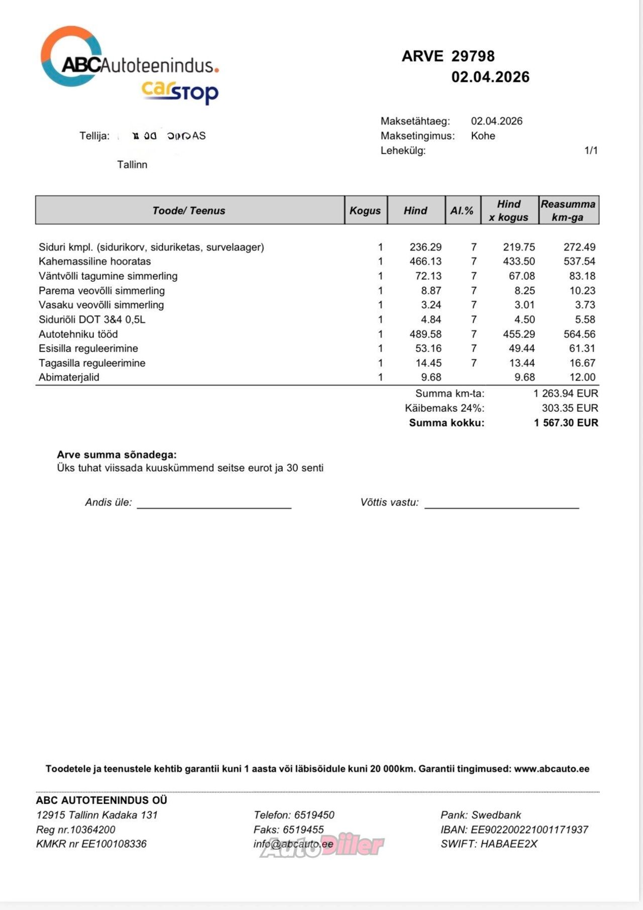 Tegemist on finantsteenusega, arvutuse tulemused võivad erineda tegelikust pakkumisest.
