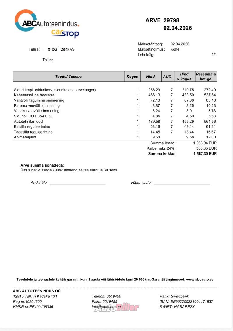 Teine omanik, minu käes alates 2022. aasta augustist. Kaasas kaks võtit ning korralikud naastrehvid. Autole on hiljuti teostatud suurem hooldus ja remonditööd: vahetatud sidurikomplekt (sidurikorv, siduriketas ja survelaager) ning kahemassiline hooratas. Lisaks on vahetatud väntvõlli tagumine simmerling ning mõlema veovõlli simmerlingid. Reguleeritud on nii esi- kui ka tagasild. Õlivahetused on tehtud regulaarselt iga 10 000–11 000 km järel koos õli-, õhu- ja salongifiltri vahetusega, viimati jaanuaris. Hammasrihm on vahetatud 176 000 km juures ning lambdaandur 210 000 km peal. Kõik hooldused alates 2022. aasta augustist on teostatud Carstopis. Vanusest ja kasutusest tulenevalt esineb iluvigu nii kerel kui ka salongis. Auto ei ole osalenud liiklusõnnetustes.