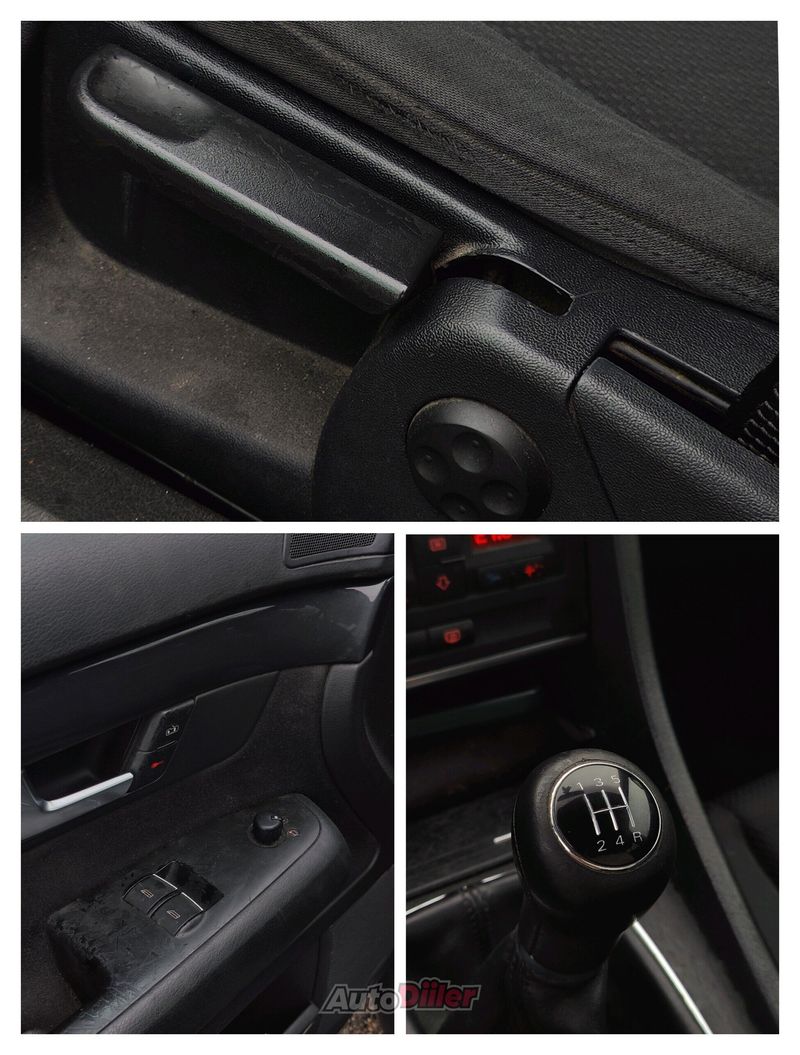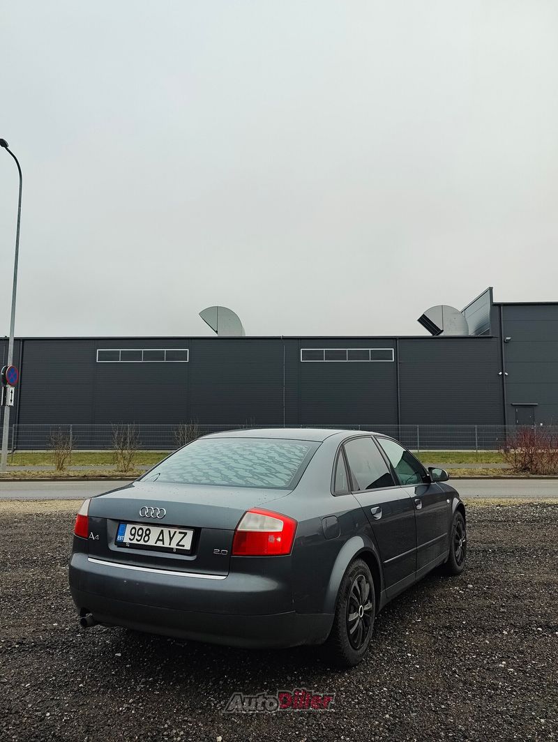 Müüa igapäevases kasutuses olev audi a4. Auto on olnud minu käes 4 aastat ning enne seda oli Eestis ainult üks omanik . Sõidukit on hooldatud õigeaegselt. Vahetatud on mootoririhm, esimesed ning tagumised pidurikettad- ja klotsid, roolilint, lambda andur, küünlad ning süütepoolid, temperatuuriandur. Samuti on korda tehtud kesklukk. Vigadest oskaks välja tuua vanusest tulenevad iluvead. Juhipoolne aknatõstuk vajab abi akna tõstmiseks. Salong puhub ainult sooja, ees veermikus teeb midagi häält (ülevaatust ei sega, kontrollitud).