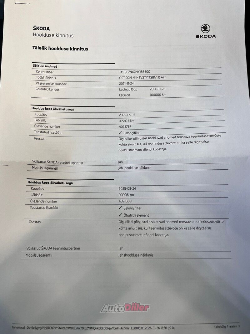 - Eesti ajalugu - Korrapäraselt hooldatud vaid margiesinduses - Viimane hooldus 09.2025 läbisõidul 105 823 kilomeetrit - Style varustus - LED (päevatuled, tagatuled, lähituled, kaugtuled) - Kaugtulede ümberlülitamise assistent - Soojendusega rool - Apple CarPlay, Android Auto - Püsikiiruse hoidja (eessõitjaga distantsi hoidev) - Parkimisandurid (ees, taga) - Parkimiskaamera - Pakiruumi avamine elektriliselt (puldist) - Digitaalne näidikutepaneel Kindel valik! Garantii Avariilisuse info: Vastavalt Eesti Liikluskindlustus Fondi kodulehele www.lkf.ee on antud sõiduk osalenud kindlustusjuhtumites. Täpsema informatsiooni osas kontakteeruge meie müügikonsultantidega.