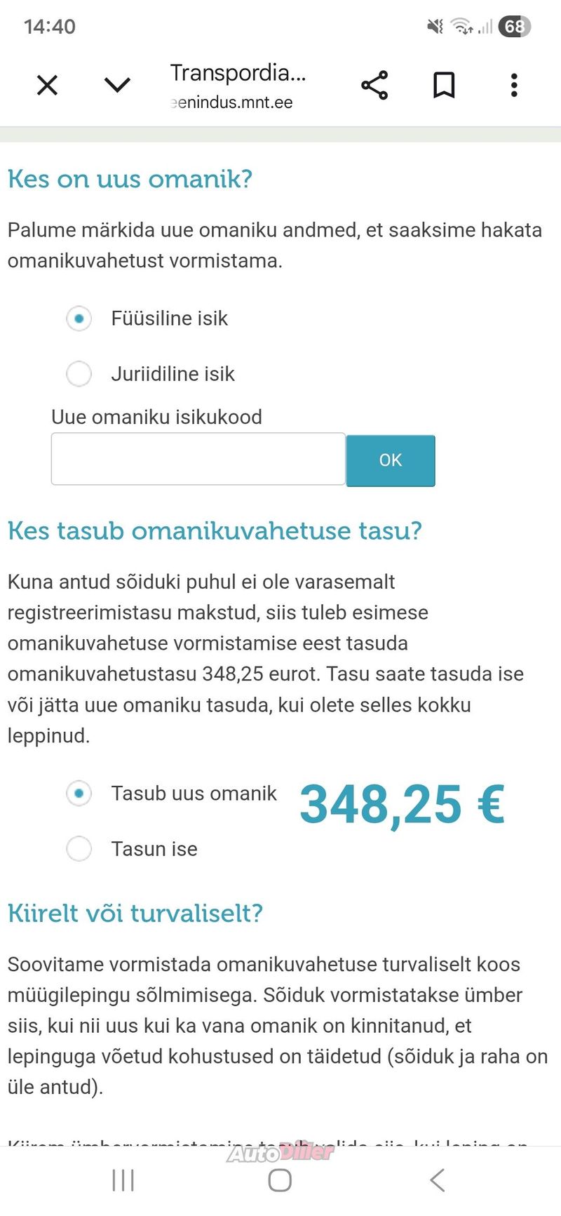 Rekisteröintimaksu on maksettava, kun auto rekisteröidään ensimmäisen kerran Viron liikennevirastossa. Se koostuu perusmaksusta, päästömäärästä ja auton painosta. Maksua alentaa ikätekijä, mitä vanhempi auto, sitä pienempi maksu.
