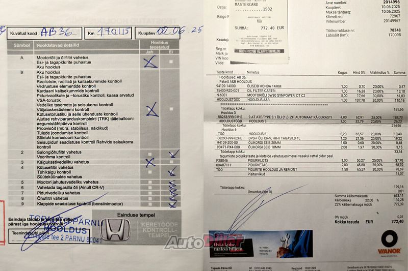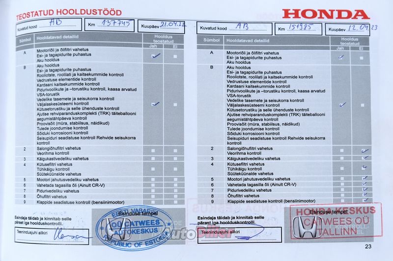 ✅ Sõiduk uuena Eestist ostetud, heaperemehelikult hoitud ✅ Catwees demoauto ✅ Diisel, automaat, 118 kW, AWD ✅ Kõik hooldused korrapäraselt tehtud ainult Honda esindustes, Catwees ja Topauto, 100% kontrollitav ✅ Viimane hooldus 10 juuni 2025 (läbisõidul 170 115km), mille käigus muuhulgas vahetati käigukasti õli ✅ Ülevaatus kuni juuni 2026 ✅ Sõiduk ei ole osalenud üheski liikluskindlustuse juhtumis ✅ Audio City-s paigaldatud Andoid Auto ekraan ja ustes Alpine S-S65 koaksiaalkõlarid 4 tk (originaalekraan ja kõlarid kaasa), wireless ühendus ✅ Kaks veljeringi (talve ja suverehvid) ✅ Ühe hooaja sõitnud lamellrehvid Barum Polaris 6, DOT 2024 ✅ Executive varustus - mootori eelsoojendus, panoraamkatus jne ✅ Kaks võtit ✅ Suitsuvaba auto Esmane registreerimine november 2016 a. Hetke läbisõit 174 716 km 344BSL VIN: SHSRE6890GU011802 Sõidukil leidub kasutamisest ja vanusest tingituid kergeid iluvigu Läbisõit ajas muutuv, igapäevakasutuses Hind 16999 € Asukoht Pärnu